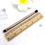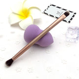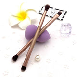 A double-ended shadow brush applies perfectly around the contours of the eye.