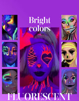 Discover the magic of our UV fluorescent face paint and eyeshadow palette, designed to make every moment unforgettable. Whether you're hitting the club, a carnival, or a Halloween party, these products will help you shine brighter and stand out like never before. Get ready to light up the night! 🌟💃